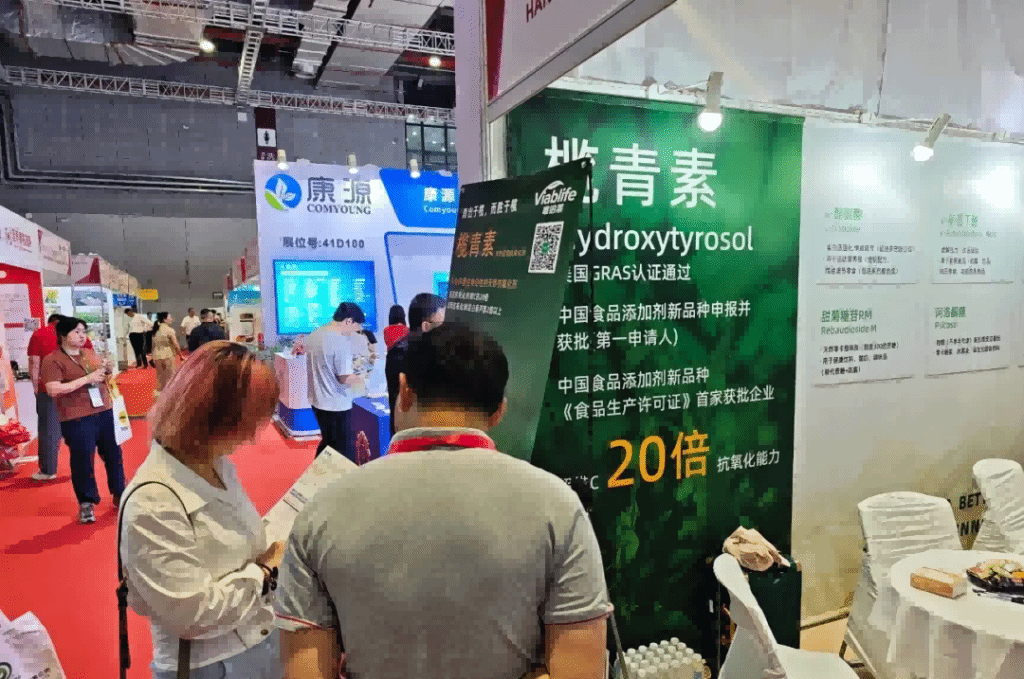 德赢vwin体育聚焦食品饮料、保健品等六大领域,携明星产品“榄青素”重磅亮相,该产品荣获“中国食品添加剂新品种申报并获批(第一申请人)”“中国食品添加剂新品种《食品生产许可证》首家获批企业'两项国家级行业认证’”,并通过美国GRAS认证,其产品具有抗氧化能力强、100%生物基碳、原液纯度高达99%等优势。
